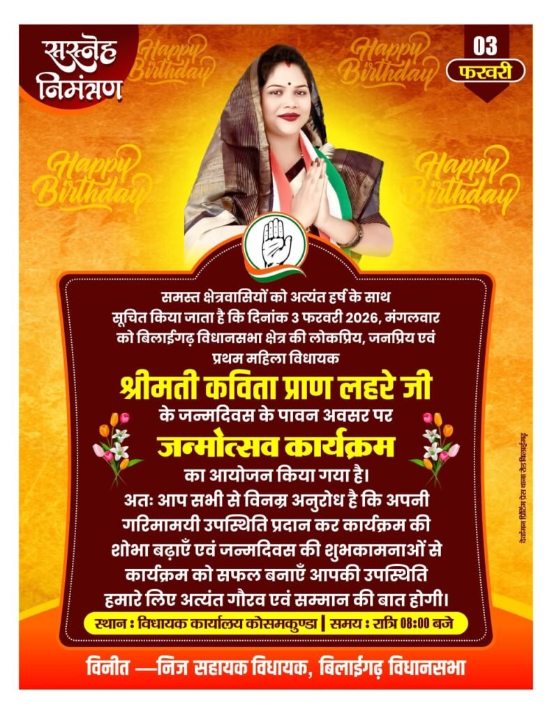 कर्तव्य, कर्म और करुणा की प्रतिमूर्ति विधायक श्रीमती कविता प्राण लहरे जी को हार्दिक बधाई एवं शुभकामनाएँ