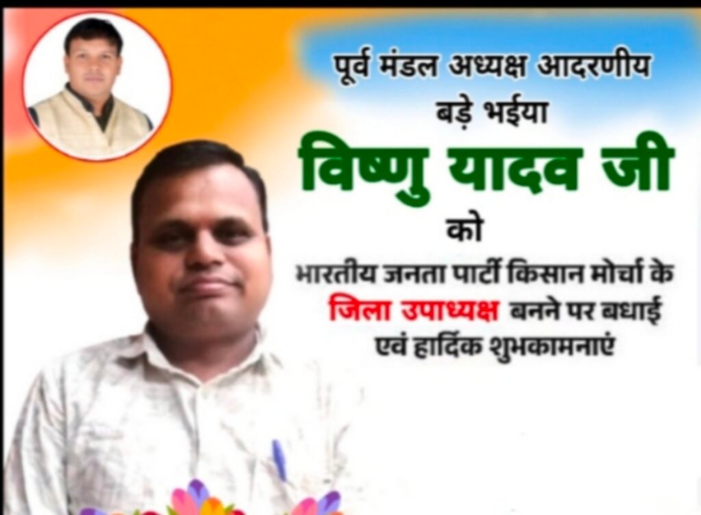 किसान मोर्चा के जिला उपाध्यक्ष बने विष्णु यादव, भाजपा कार्यकर्ताओं में हर्ष की लहर">